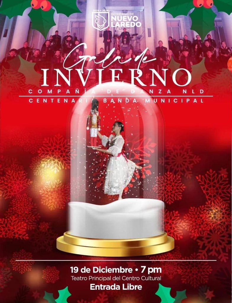 NUEVO LAREDO.- El Gobierno Municipal de Nuevo Laredo, a través de la Dirección de Arte y Cultura, invita a la ciudadanía a disfrutar de la Gala de Invierno, un evento que reunirá en un mismo escenario a la Compañía de Danza NLD y a la Centenaria Banda Municipal, en una velada que celebra el talento local y el impulso permanente a la cultura.