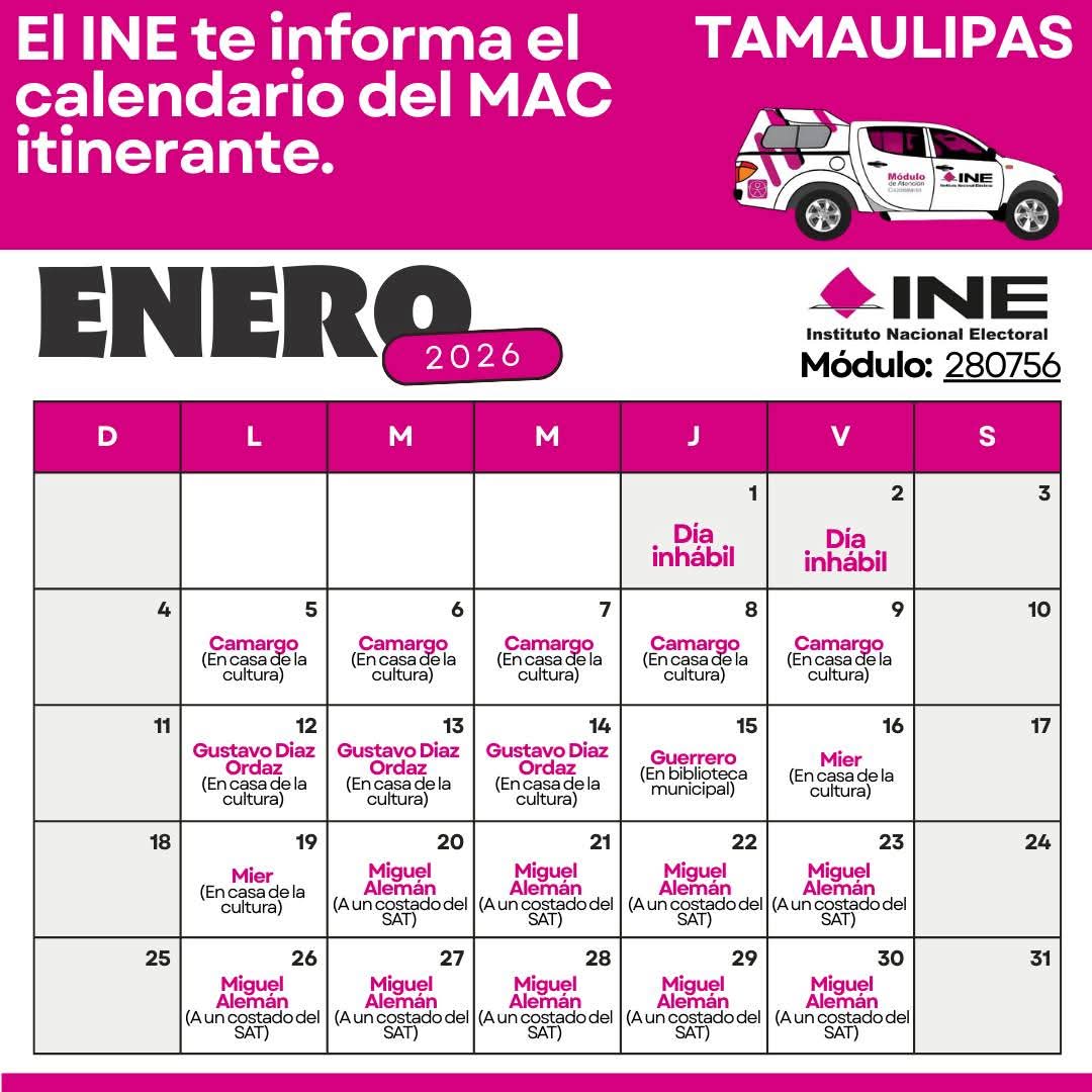 El 07 Distrito Electoral cuenta con el módulo semifijo 280756 que acerca el servicio a la ciudadanía en los municipios de Camargo, Gustavo Díaz Ordaz, Mier, Guerrero y Miguel Alemán; además brinda atención a las ciudadanas y ciudadanos que se encuentran imposibilitados físicamente para acudir a los módulos, conforme a lo establecido en el artículo 141 de la Ley General de Instituciones y Procedimientos Electorales (LGIPE).