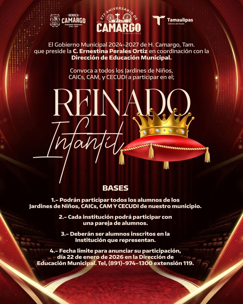 Esta convocatoria forma parte de las acciones conmemorativas del 277 Aniversario de nuestra Heroica Camargo, destacando el interés de la Administración Municipal por preservar nuestras tradiciones y promover el orgullo de pertenencia entre las nuevas generaciones.