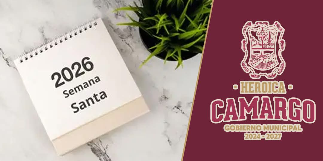 CAMARGO.- El Gobierno Municipal de H. Camargo informa que, con motivo del periodo vacacional de Semana Santa, se suspenderán labores en las oficinas del Palacio Municipal los días jueves 2, viernes 3 y lunes 6 de abril de 2026.