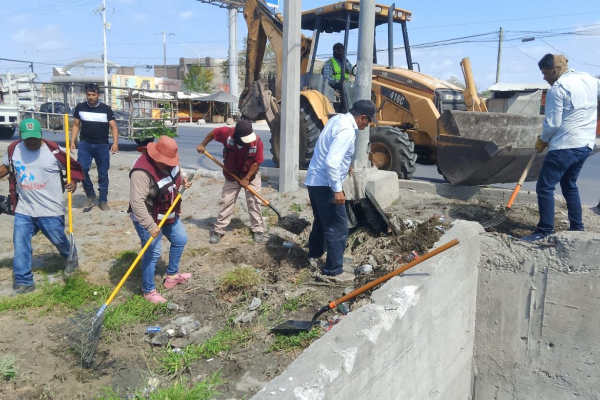 El Gobierno Municipal de Reynosa trabaja de manera ininterrumpida en la limpieza y desazolve de drenes y canales, así como rejillas e instalaciones pluviales, para evitar propagación de fauna nociva y permitir el flujo libre del agua.