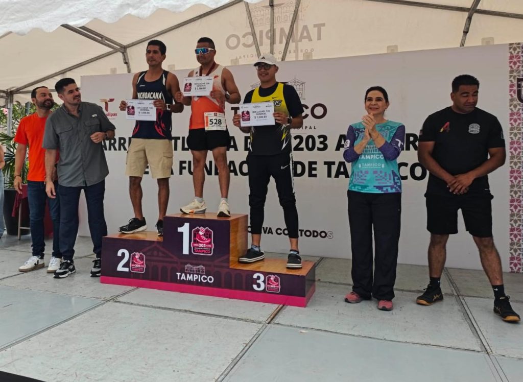 Tampico, Tamaulipas.- En el marco del 203 aniversario de la Fundación del municipio de Tampico se realizó una carrera con rutas de 24 y 13 kilómetros, la cual contó con la participación de un elemento de la Guardia Estatal.