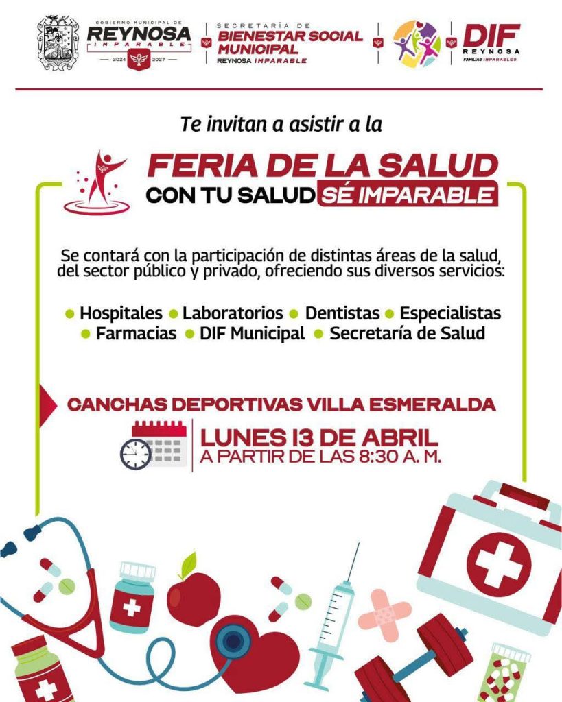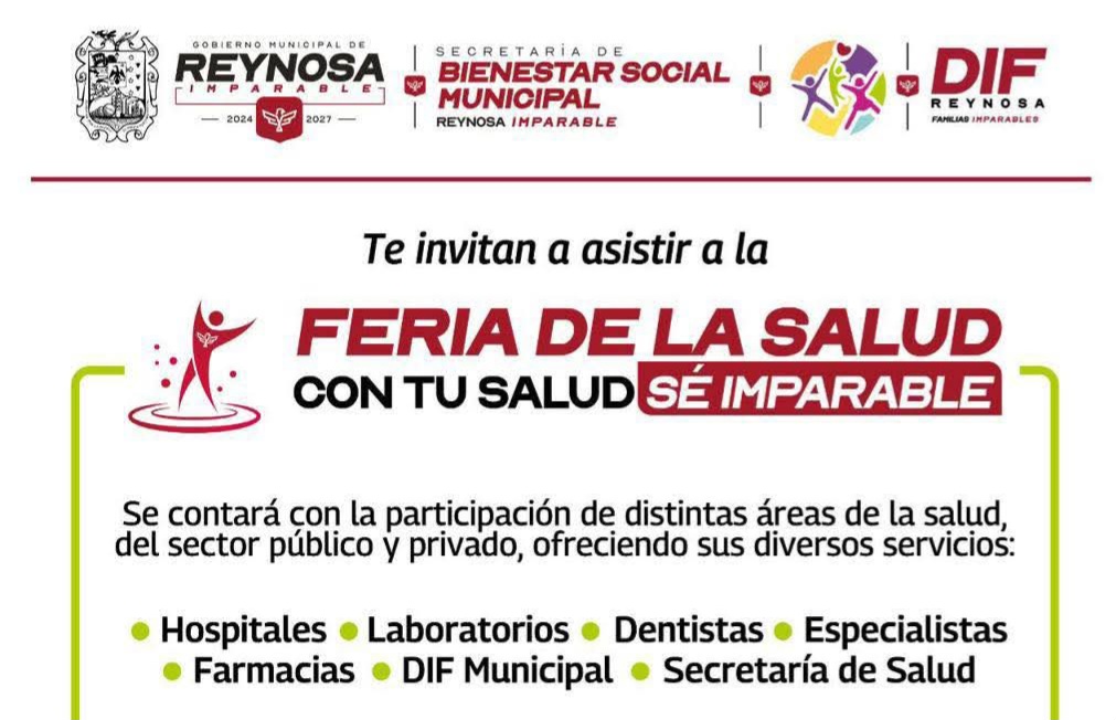 El alcalde Carlos Peña Ortiz invita a la ciudadanía a asistir a la Feria de la Salud “Con tu salud sé imparable”, donde se brindarán diversos servicios médicos con la participación de instituciones del sector público y privado.