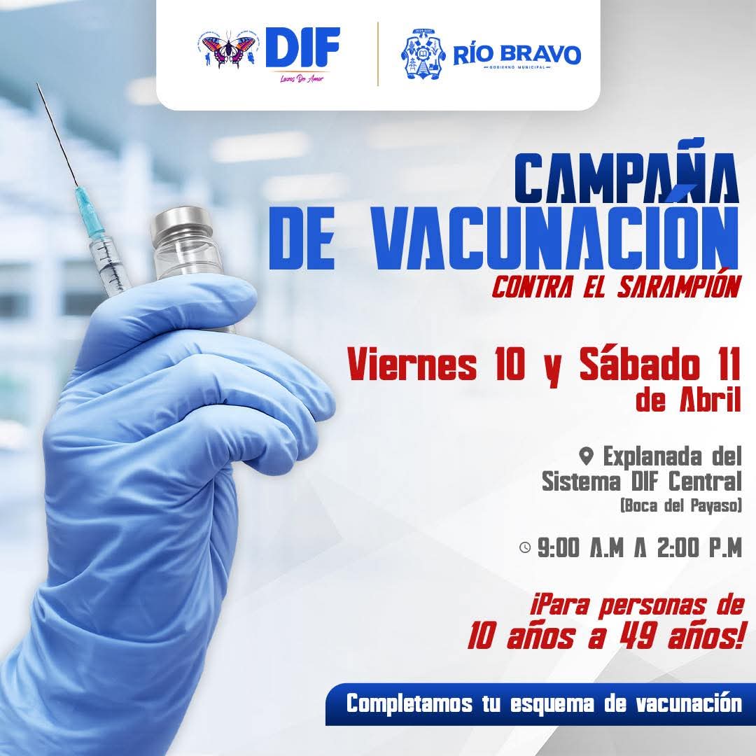 RIO BRAVO.- El Sistema DIF Río Bravo, que preside la Sra. Blanca Arizpe de Almaraz, en coordinación con la Presidencia Municipal que preside el Lic. Miguel Ángel Almaraz Maldonado y la Dirección de Servicios Médicos, IMSS Bienestar y la Secretaría de Salud, te invita a participar en esta jornada.