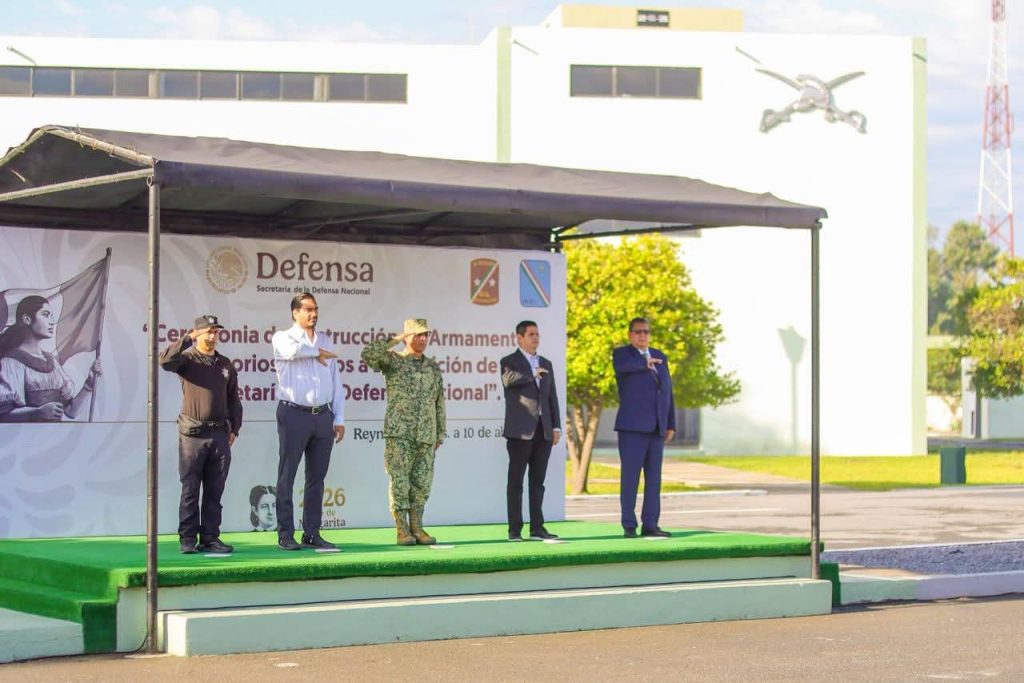 El Presidente Municipal Carlos Peña Ortiz participó en la “Ceremonia de Destrucción de Armamento y Accesorios Puestos a Disposición de la Secretaría de la Defensa Nacional, SEDENA”, celebrada este viernes 10 de abril en el Campo Militar General Pedro Hinojosa 1A, de Reynosa, ceremonia que presidió el Coronel de Caballería Marco Antonio de la Fuente Barragán, Comandante del Décimo Noveno Regimiento de Caballería Motorizado de la Octava Zona Militar.