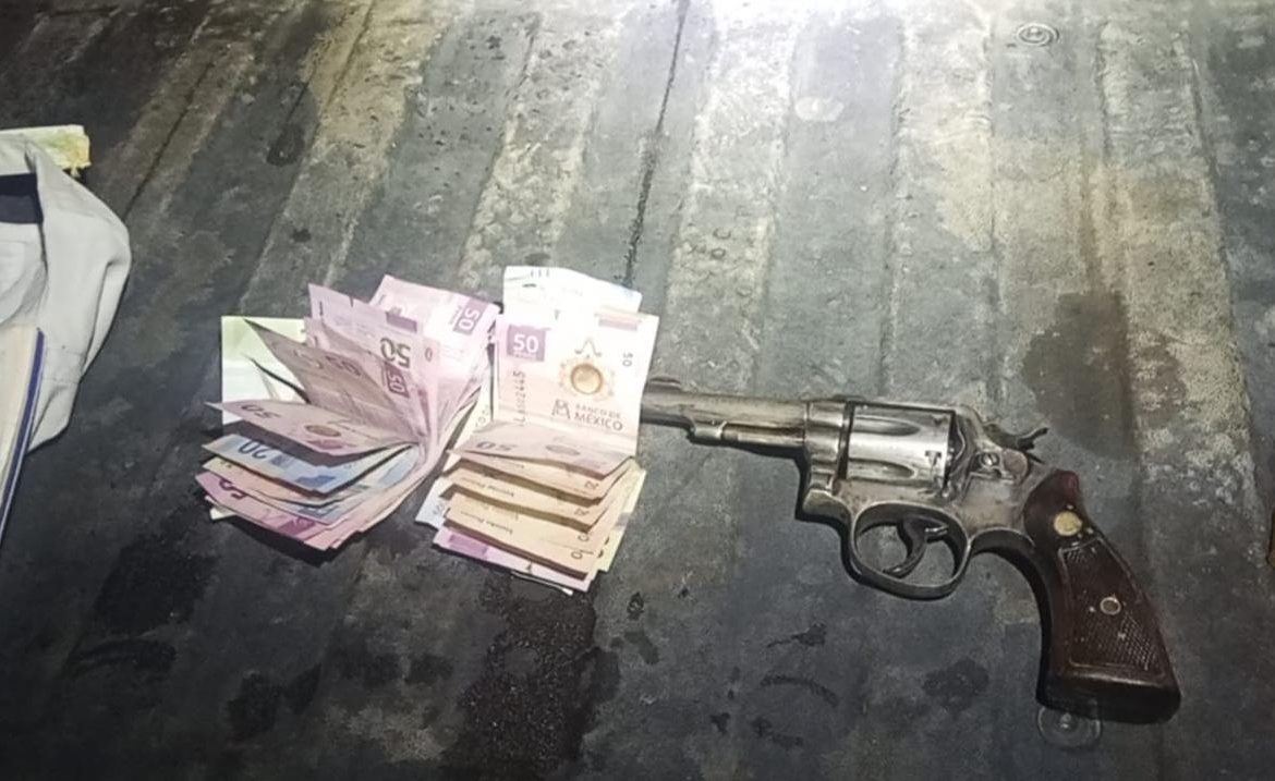 Metros adelante, los elementos lograron darle alcance y someterlo, asegurándole un arma de fuego corta abastecida con cinco municiones, así como dinero en efectivo cuyo monto quedó pendiente por contabilizar.