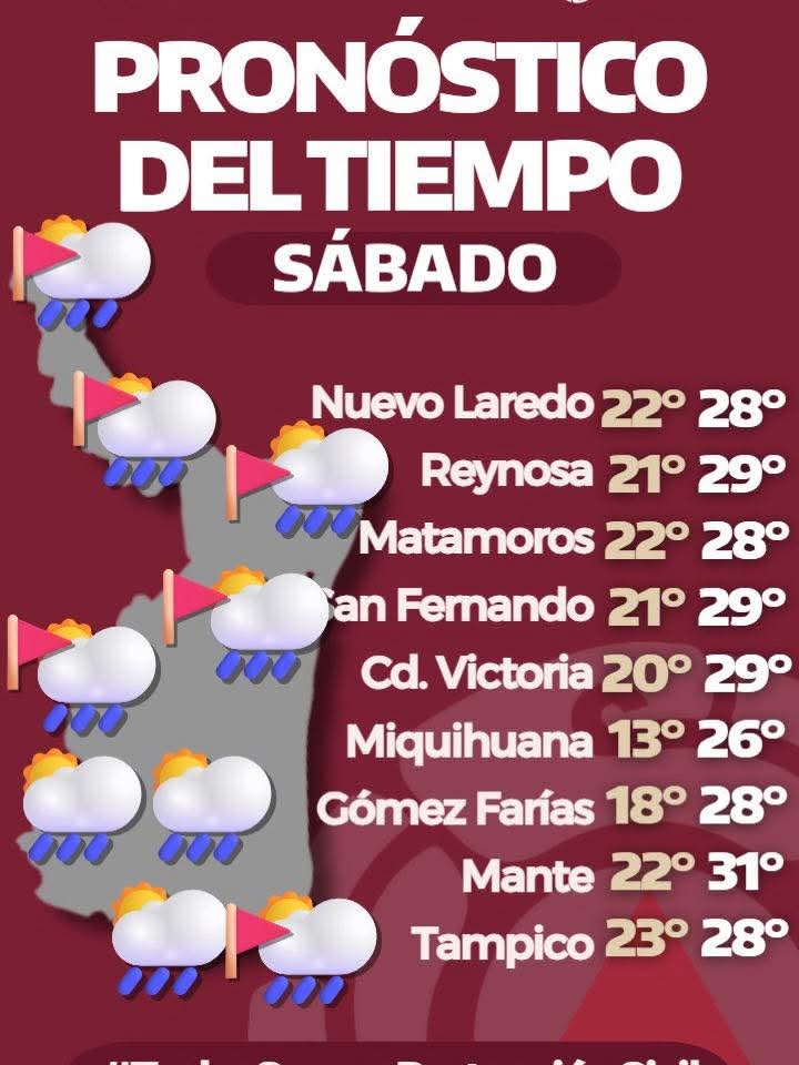 Para la tarde de este sábado, se prevé ambiente cálido y bochornoso con sensaciones térmicas de 35º y la presencia de evento “Surada”; ráfagas de viento entre los 35 a 55 km/h.