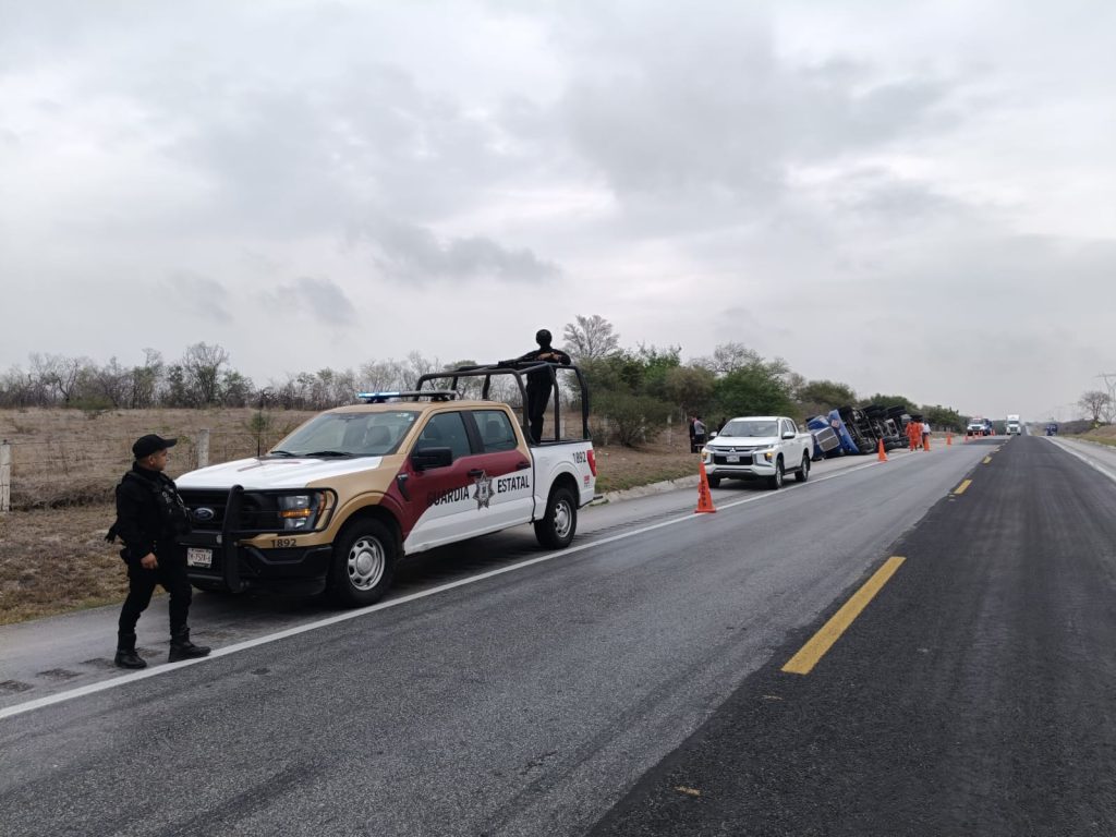 González, Tamaulipas.- Derivado de la volcadura de un tractocamión ocurrida sobre el kilómetro 19 de la Carretera Federal 80 Libramiento Villa Manuel-González, la circulación se encuentra cerrada.