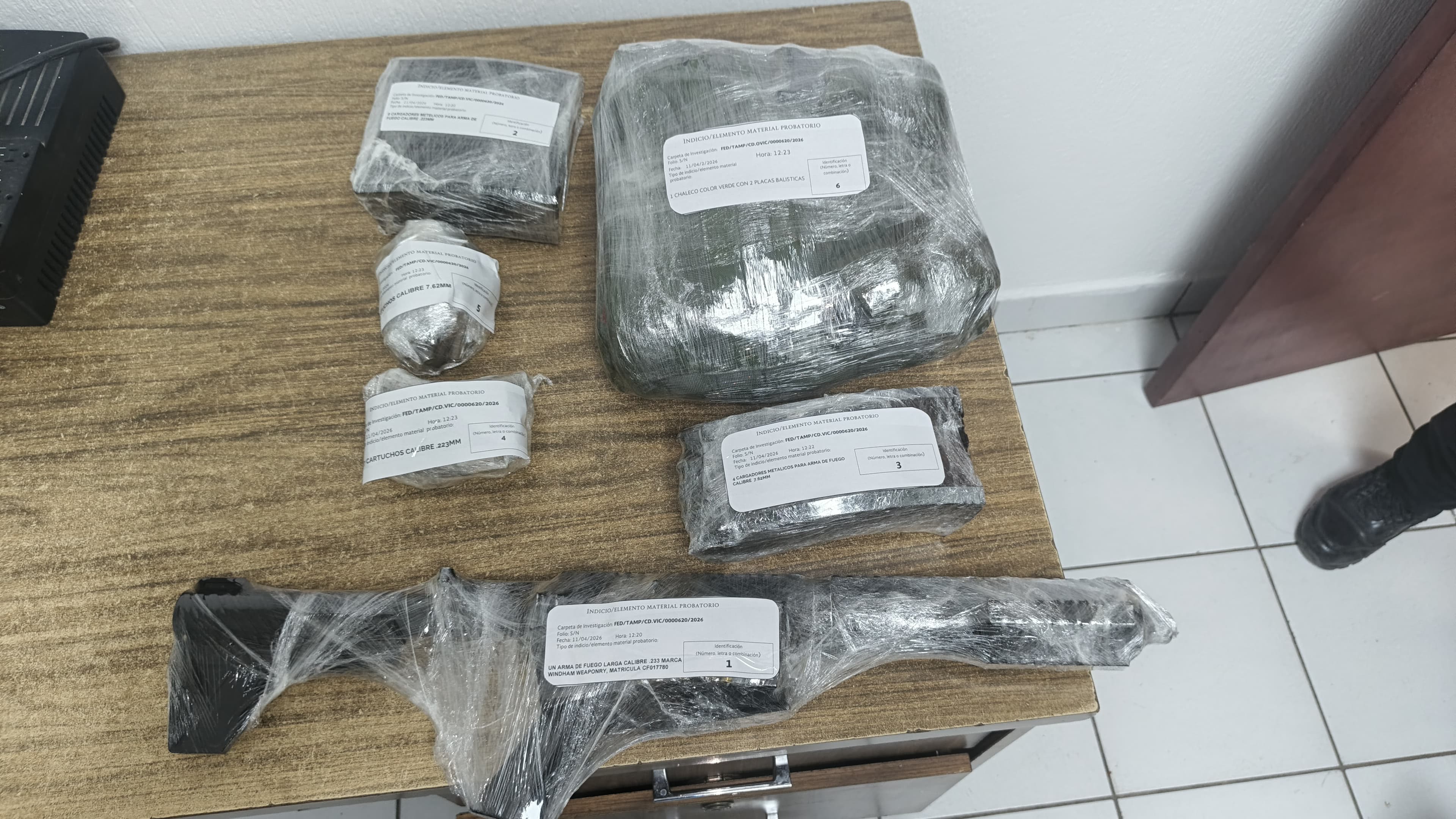 Durante la revisión, los agentes contabilizaron un total de ocho cargadores metálicos para calibre .223, cuatro cargadores para calibre 7.62×39 milímetros, además de 77 cartuchos calibre .223 y 80 cartuchos calibre 7.62×39 milímetros.
