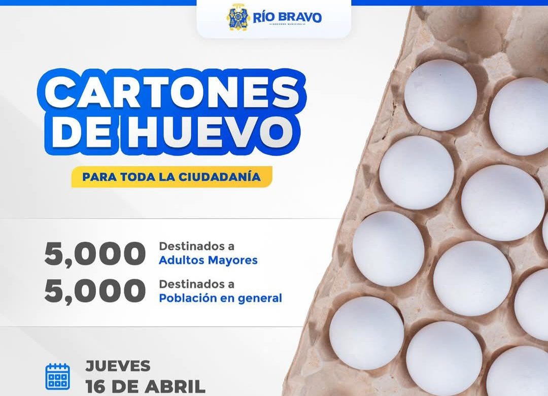 RIO BRAVO.- Encabezados por el alcalde, Lic. Miguel Angel Almaraz Maldonado, realizaremos la entrega de cartones de huevo para la ciudadanía.