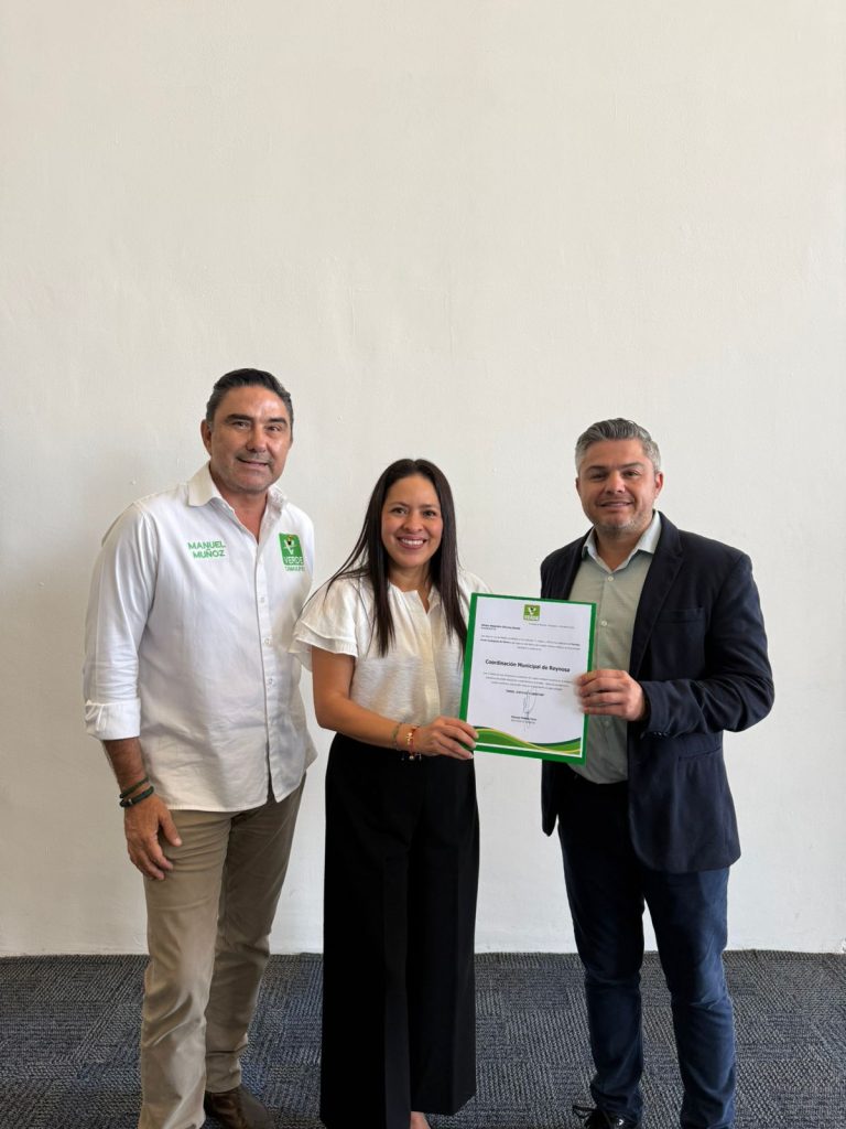 Le correspondió a la dirigente nacional del VERDE, senadora Karen Castrejón Trujillo líder nacional del verde, le hizo entrega del nombramiento ante la presencia del licenciado Manuel Muñoz Cano, dirigente estatal.
