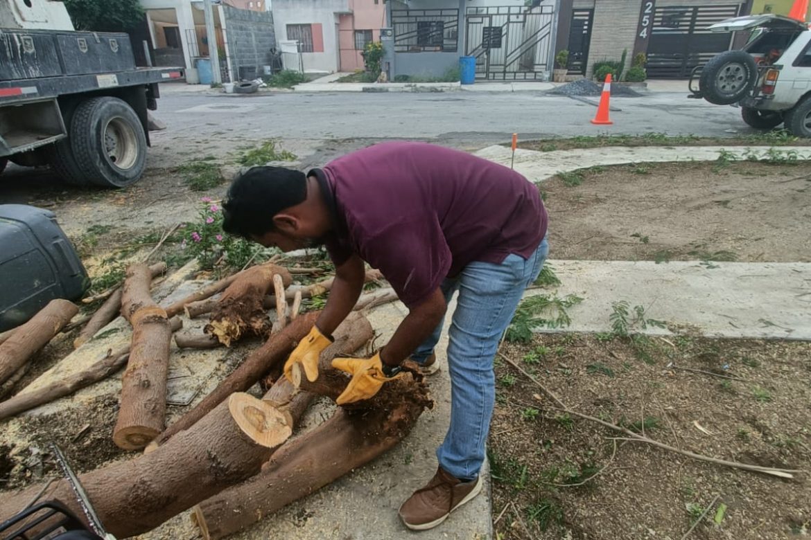Asimismo, en la colonia Puerta del Sol, cuadrillas de Alumbrado Público levantaron un arbotante y cable caído a causa de los vientos. En la colonia Los Almendros, se ejecutó la tala de un árbol caído en la calle Circuito Caoba #503.