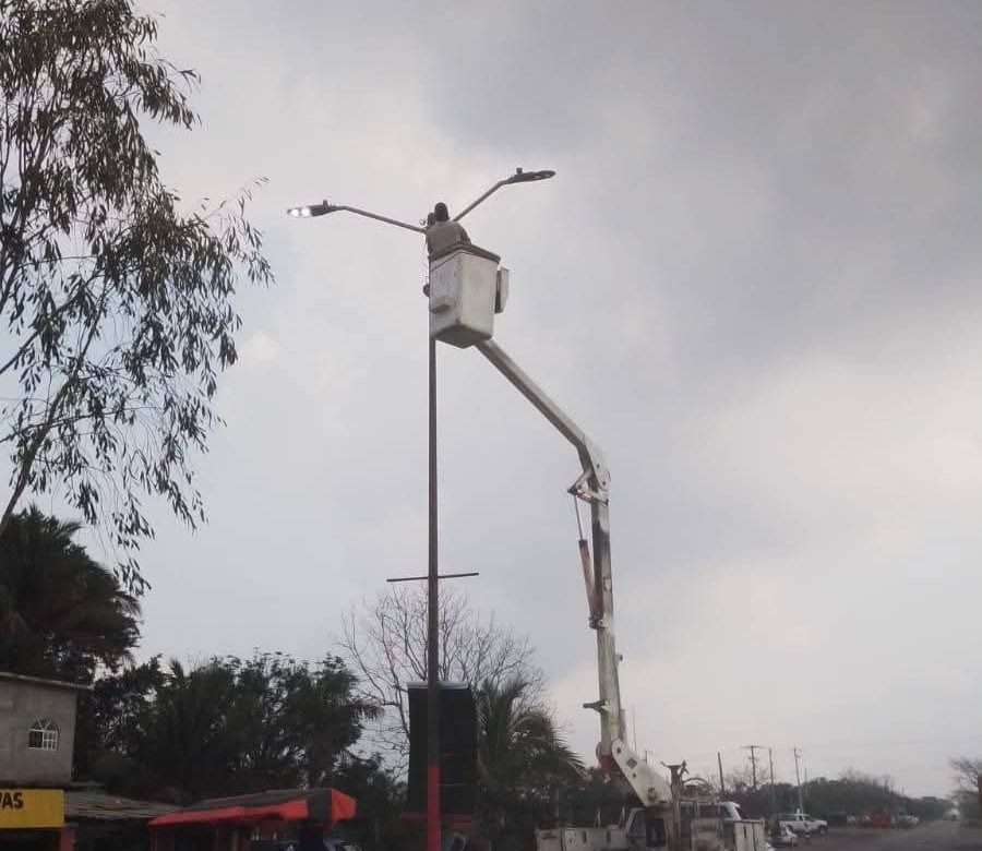 ALDAMA.- El Gobierno Municipal de Aldama, encabezado por la presidenta municipal, María Noemí Sosa Villarreal, a través de la Dirección de Obras Públicas, continúa trabajando en acciones de mantenimiento y mejora del alumbrado público en distintos puntos de la ciudad.