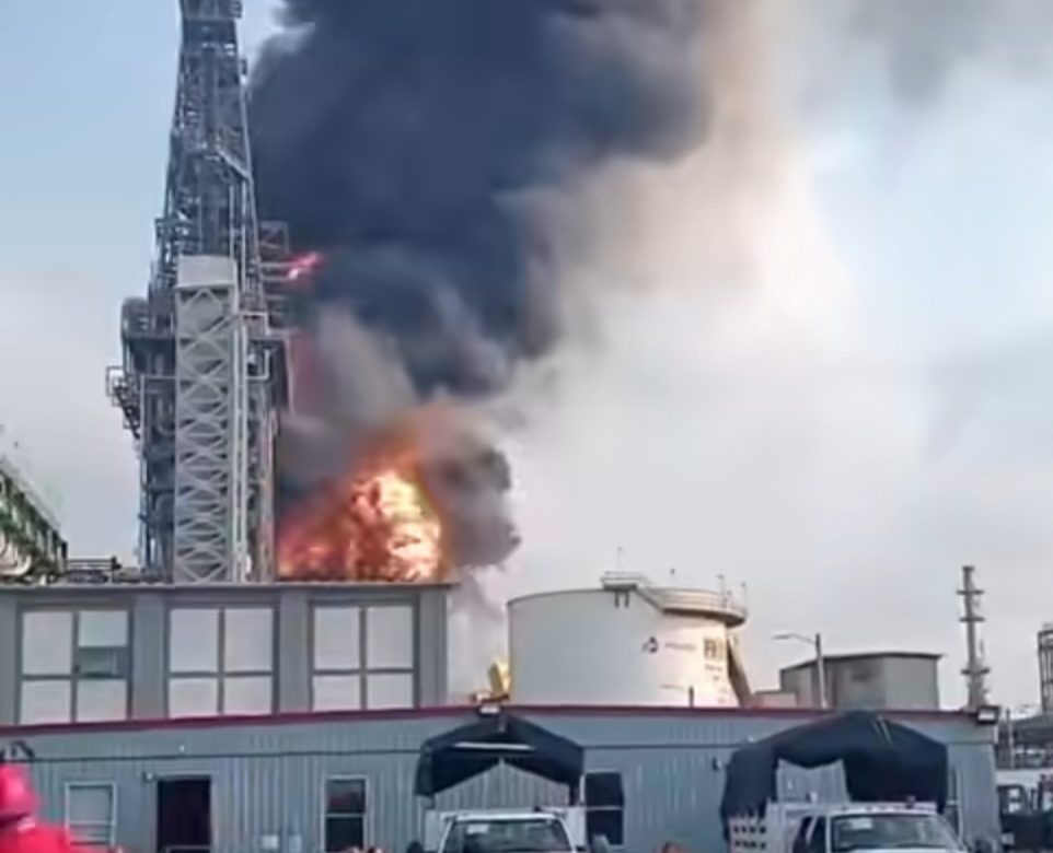 Fuerte explosión en el interior de la refinería Miguel Hidalgo observándose una enorme columna de humo salir del complejo petrolero.