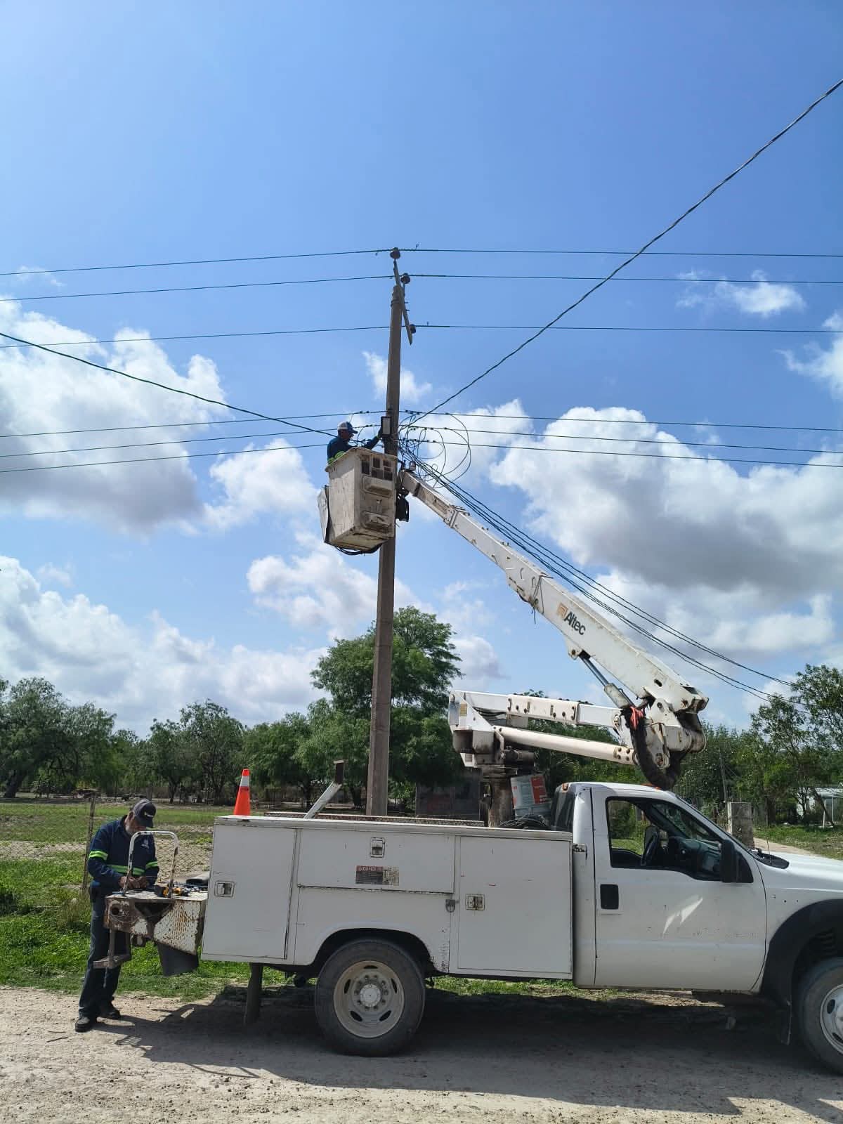 RIO BRAVO.- La Diputada Federal Casandra de los Santos Flores atendiendo la petición de la delegada ejidal Beatriz Fuentes, hice llegar apoyo al ejido Veracruz y Progreso con la instalación de luminarias de alumbrado público.