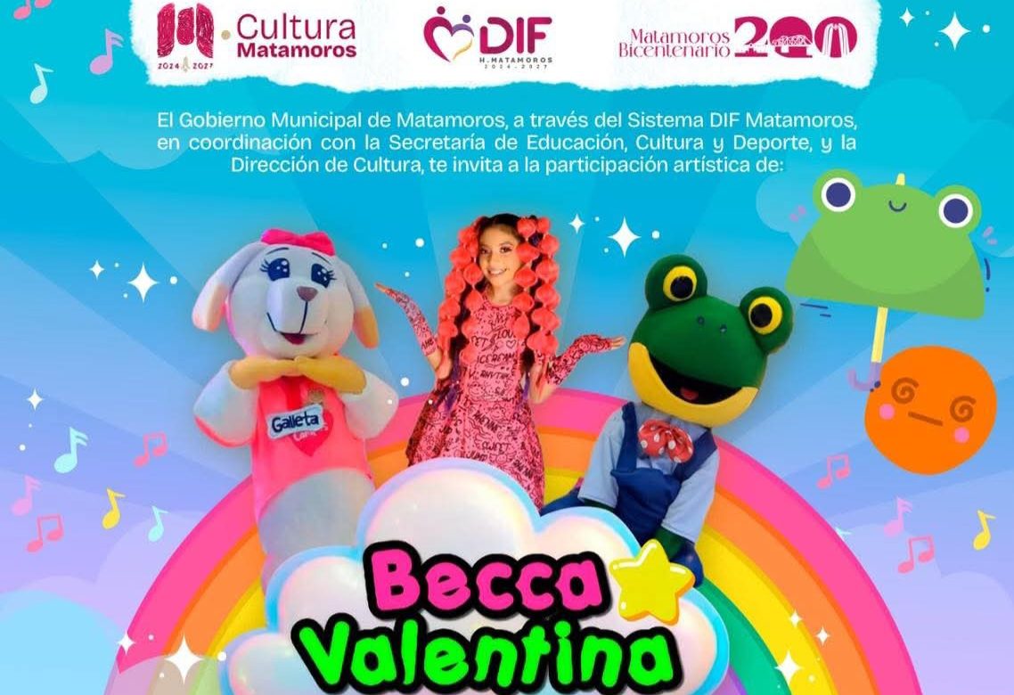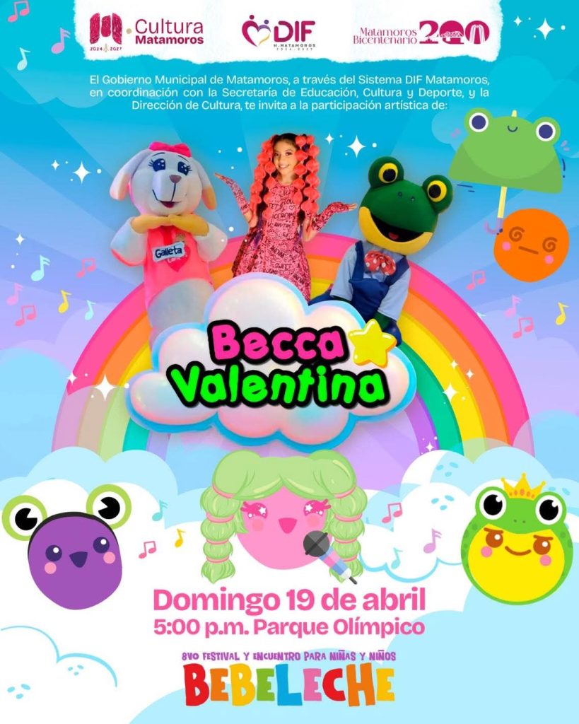 MATAMOROS.- Como parte del 8° Festival y Encuentro para Niñas y Niños Bebeleche, el Parque Olímpico será sede de la participación artística de Becca Valentina, sumando música y energía a una tarde pensada para disfrutar en familia.