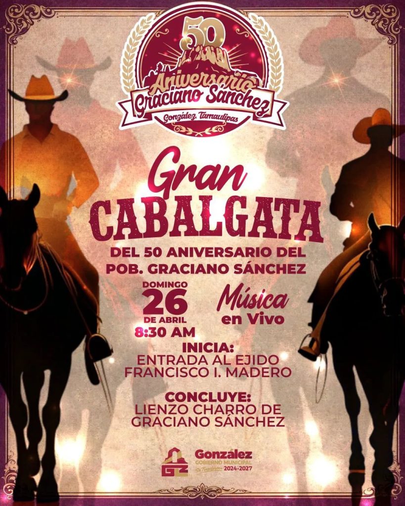 GONZALEZ.- El Gobierno Municipal de González, encabezado por el Dr. Miguel Alejandro Zuñiga Rodríguez, invita a todas las familias de nuestro municipio y la región a celebrar juntos el medio siglo de historia del Poblado Graciano Sánchez.