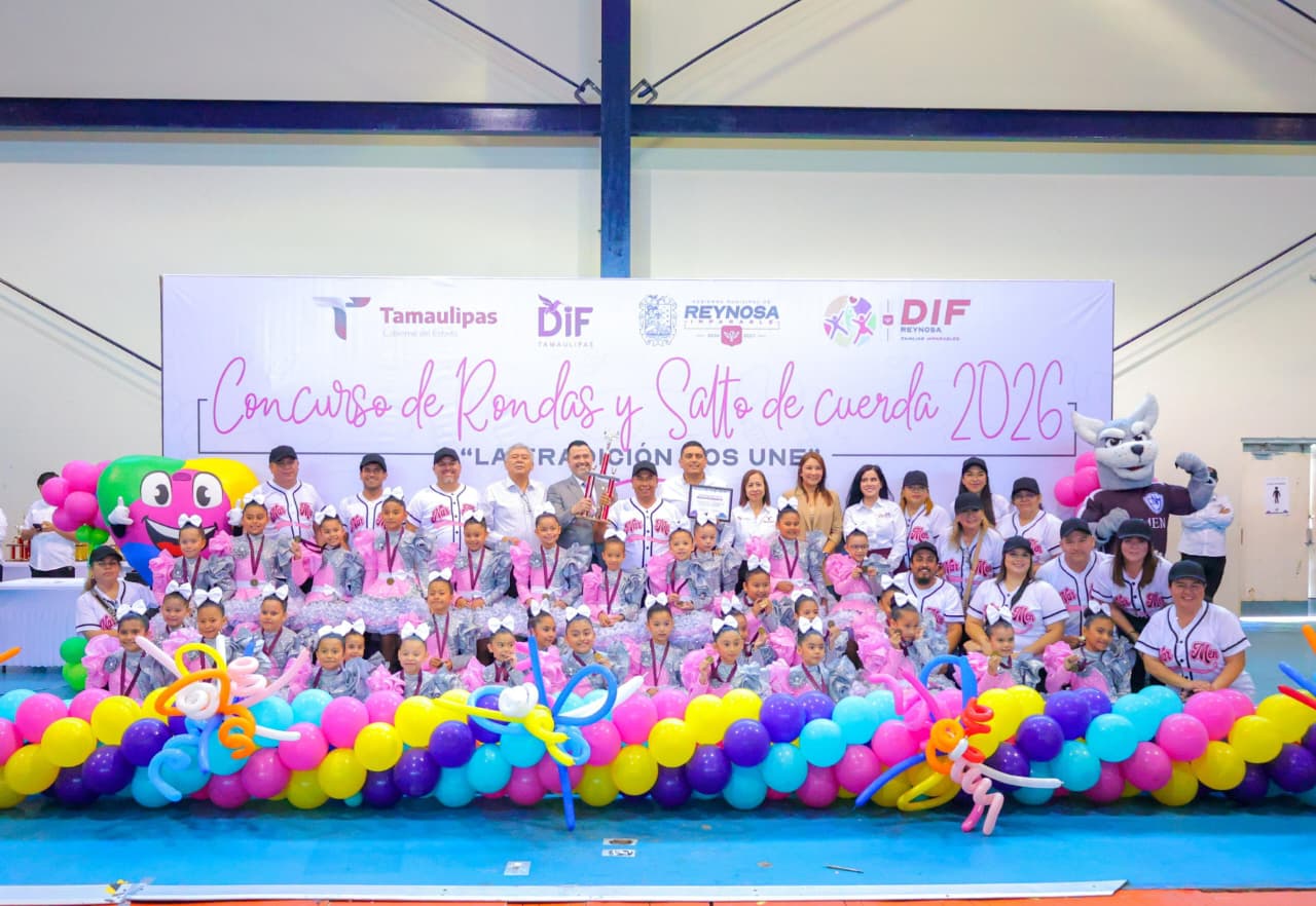En el Concurso de Rondas Infantiles y Salto de Cuerda 2026, la Escuela Primaria “Narciso Mendoza”, obtuvo el Primer Lugar en la categoría de Rondas Infantiles, mientras que el Instituto Minita destacó al lograr el Primer Lugar en Salto de Cuerda en las modalidades Individual, en Pareja y en Conjunto, con estos resultados, avanzan a la etapa regional, donde representarán a Reynosa.