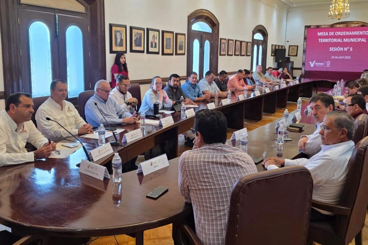 Cd. Victoria, 18 de abril de 2026.- En representación del alcalde de Victoria Eduardo Gattás Báez, el secretario del Ayuntamiento del Hugo Reséndes Silva encabezó los trabajos de la quinta reunión ordinaria de la Mesa de Ordenamiento Territorial Municipal.